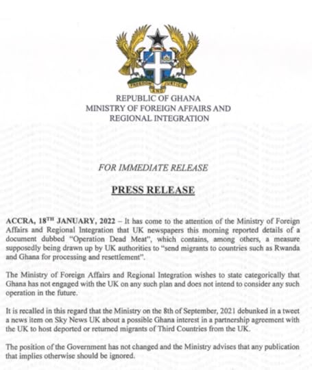 Apart from the fact it would be entirely illegal to deport eg Syrians or Afghans to Africa, I knew it to be simply impossible the story was true. I have had the pleasure of being friends with President Nana Akufo Addo of Ghana, and with many of his family, for twenty years. Nana would never agree to such a thing; his background is as a human rights lawyer and activist.