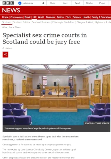Lady Dorrian, while the Murray case was engaged in its painfully slow process, produced a report for the Scottish Government suggesting the abolition of juries in cases of sexual assault, and that accusers should not attend court or be cross-examined by defence lawyers. Dorrian’s public advocacy of this on the BBC alongside the Scottish Government funded Rape Crisis Scotland, will, to say the least, do her no harm with Nicola Sturgeon.
