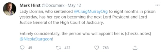 There is a real possibility that aspects of Dorrian’s handling of the Murray case could come in for serious criticism by the Supreme Court. These include her acceptance of a handful of anonymous tweets claiming to have learnt identities from Murray’s blog (with zero evidence they actually knew identities) as having important evidential weight, her effective dismissal of his entire affidavits as lies despite hearing no evidence that contradicted them, her making no reference at any stage to Salmond’s acquittal (indeed both her judgement and sentencing remarks on Murray refer to Salmond’s “victims” and “offences” with no “purported”, “alleged” or other qualifier, even after the acquittal), her extremely low bar for jigsaw identification (to any individual who already had specialist knowledge), the breathtakingly draconian sentence, and the curt and offhand dismissal of all Article X ECHR freedom of speech arguments.