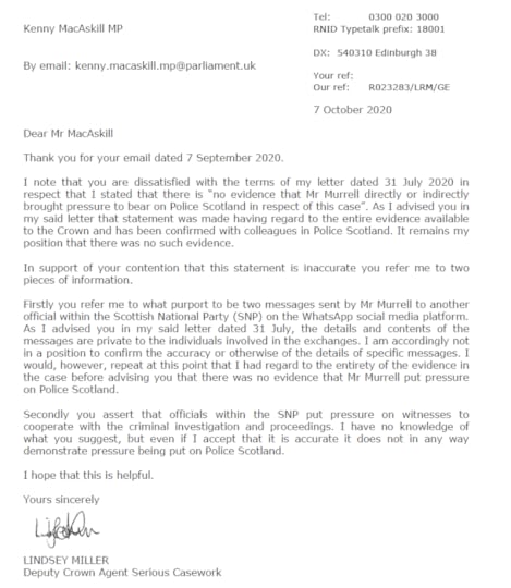 the COPFS’s saying there was insufficient evidence, and in which communication