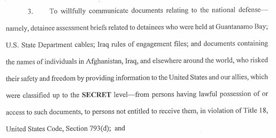 and pointed out that the “and” makes the point on documents mentioning names an additional category of document, not a restriction on the categories listed earlier. You can read the full superseding indictment here; be careful when browsing as there are earlier superseding indictments; the US Government changes its indictment in this case about as often as Kim Kardashian changes her handbag.