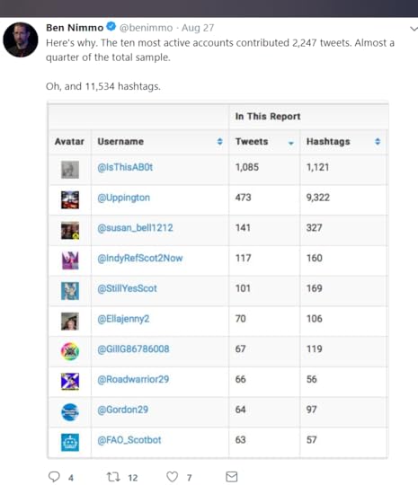 Let us remind ourselves of Ben Nimmo’s brilliant identification of top Russian trolls, nine out of ten of which turned out to be ordinary Scottish Independence supporters who simply tweeted things Nimmo does not like, while the tenth is a news aggregation bot which actually has the word “bot” in its name. That the committee takes this stuff seriously is a fact so eloquent in itself, I need hardly say more.