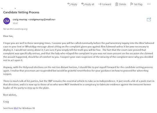 I cannot tell you how desperately I wish all of this was not true. I cannot tell you how desperately I wish the plot against Alex Salmond had indeed all been made in Whitehall. I cannot tell you how much I have hated the fact that my knowledge of Nicola’s plot against Alex has alienated me from so many fellow SNP members I worked alongside during the 2014 campaign. I do hope that scales are at least beginning now to drop from some eyes.