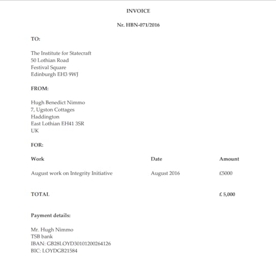 Yes, that is Ben Nimmo, £5,000 a month consultant to the Integrity initiative, and his identification of scores of ordinary Scottish tweeters as “Kremlin trolls”. You will recall that one sure sign of a Kremlin troll according to Nimmo was use of the phrase “cui bono”. Nimmo was Leask’s source for the Herald article I quoted above.