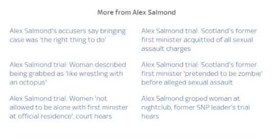Matthews obviously thought it of no significance – but then again, it was defence evidence and Matthews, in common with the entire mainstream media, reported virtually zero of the defence evidence. Today’s Sky News article helpfully gives links to the headlines of their Salmond trial stories: