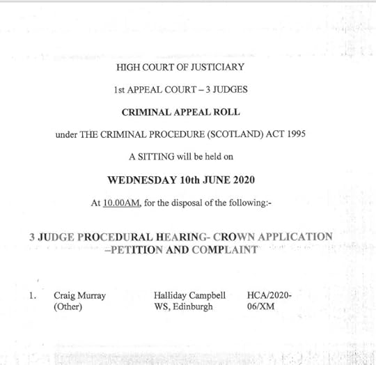 This hearing on 10 June is supposed to be public, but it will be virtual because of coronavirus. While it is a case management hearing, I shall nevertheless be grateful if you are able to “attend” virtually, as I am very keen indeed that I am not stitched up out of the public eye. Please send an email requesting access to the virtual hearing on 10 June to judicialcomms@scotcourts.gov.uk. I am very keen as many people do this as possible. Journalists please in addition copy in communications@scotcourts.gov.uk for accreditation.