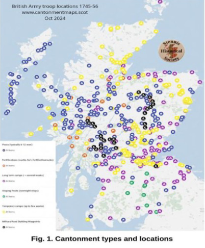 This map of British Army outposts 1745-56 is clearly indicative of a land under enemy occupation, not a land hosting its own army. The extensive garrisoning of Atholl, Mar and Badenoch is especially striking, given that these were the key areas denuded of their civilian populations, ethnically cleansed of the Gael, in the immediately ensuing period.
