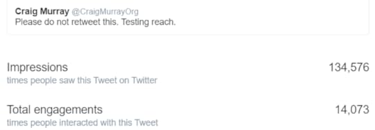 Impressions per retweet is a rough measure of what is going on. For a more accurate measure you would need to divide Impressions by: my 80,000 follows plus the totaled follows of all who retweeted, in each case. But the rough measure is a good indication that something is amiss. As I said, I am attempting to measure a phenomenon I have noticed over a long period.