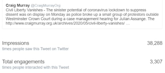 The reason that I did this experiment is that I have been observing this happening for a long time, with many of my most important tweets suppressed. Either there is electronic monitoring and analysis of subject matter to suppress certain political subjects, or there is active human monitoring. I am very much inclined to believe the latter, because I find the suppression kicking in is quite nuanced; it depends not so much on subject matter, as on precisely my take on the subject matter and how far it challenges the mainstream narrative.