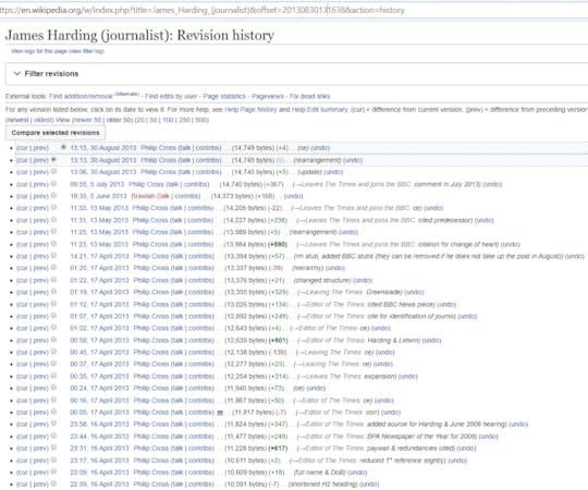 Galloway believes this was a paid operation. It appeared to have very close links to the Times newspaper and to the Euston Manifesto group. James Harding, Times editor, had his page lovingly edited 118 times by the “Philip Cross” operation, largely to remove or rebut criticisms.
