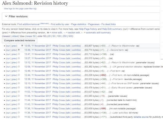 Alex Salmond was of course an opponent of NATO bombing of Serbia and has been a staunch and outspoken opponent of UK military intervention in the Middle East. So who was editing negatively his Wikipedia profile? “Philip Cross” of course.