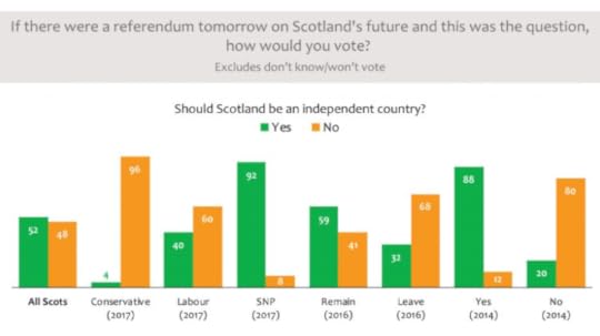 The headline from the major new Ashcroft poll of Scottish public opinion is that Independence now has 52-48 majority support, and that is excellent news. Ashcroft himself is a Machiavellian Tory but his polling effort involves much larger samples than regular newspaper polls and has a generally good record. For me, the most interesting point in his new Scottish poll is that fully 40% of Scottish Labour voters in 2017 now support Independence.