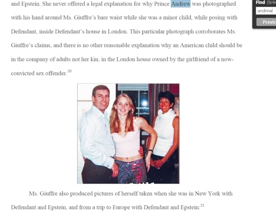In the UK, Ms Giuffre’s alleged relationship with Prince Andrew has been mentioned in the media. In fact the evidence that she had a relationship with Prince Andrew of some sort is overwhelming. Here is some of the actual evidence from the court documents.