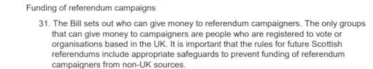 I have one further point to make that has been picked up by neither the Scottish Government’s proposals nor the Electoral Commission’s proposals. That is the restriction on who can fund.