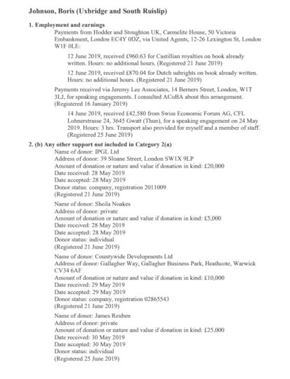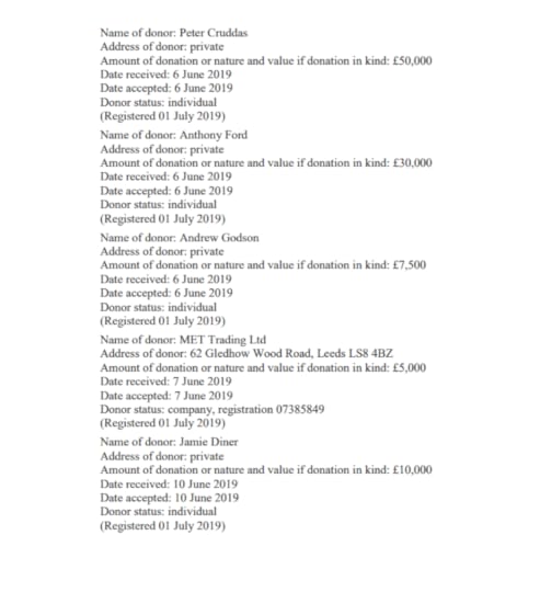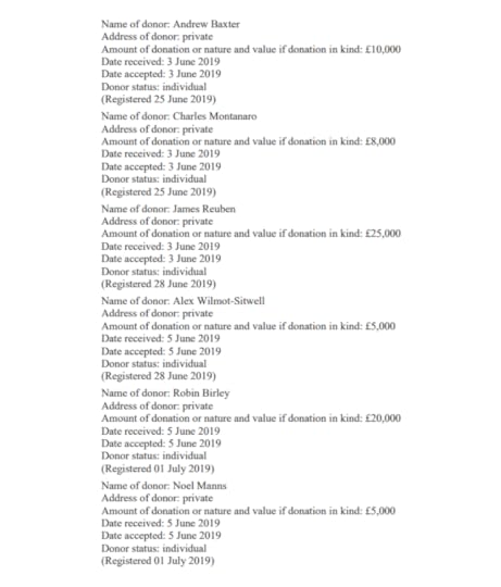 Between just 28 May and 10 June Boris Johnson received £235,500 in “private” donations, to himself personally, as he prepares to become the UK’s unelected Prime Minister.