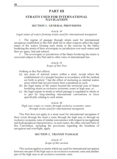 Part III of the UN Convention on the Law of the Sea relates entirely to passage through straits.