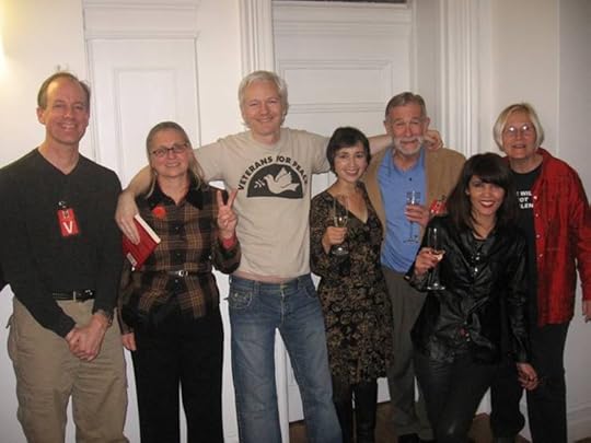 Left to Right: Thomas Drake, Coleen Rowley, Julian Assange, Elizabeth Murray, Ray McGovern, Nadira, Ann Wright