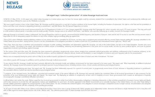 there has been a relentless and unrestrained campaign of public mobbing, intimidation and defamation against Mr. Assange, not only in the United States, but also in the United Kingdom, Sweden and, more recently, Ecuador.” According to the expert, this included an endless stream of humiliating, debasing and threatening statements in the press and on social media, but also by senior political figures, and even by judicial magistrates involved in proceedings against Assange.