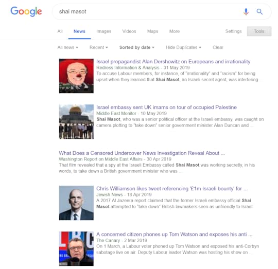 A Google news search reveals that not one single mainstream media outlet has mentioned Shai Masot in 2019. Not even once.