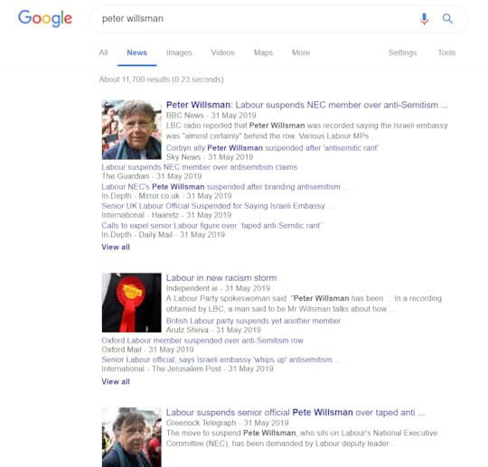 Yet the main political news story the last two days has been the suspension of Labour’s Peter Willsman for “anti-semitism” for making the suggestion that the “anti-semitism” witch-hunt is promoted by the Israeli-Embassy. This has been demonstrably a massive story: