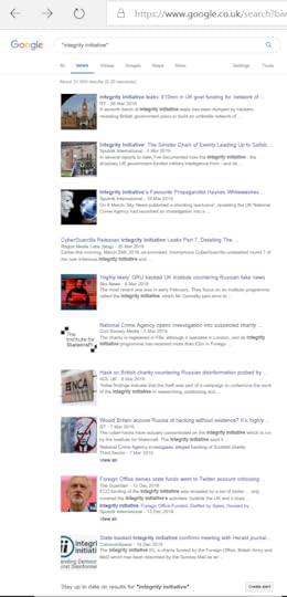 If, by contrast, you do a Google “news search” for the term “Integrity Initiative”, the UK government’s covert multi million pound programme to pay senior mainstream media journalists to pump out anti-Russian propaganda worldwide, you only get one eighth of the results you get for “Russiagate”. Because the mainstream media have been enthusiastically promoting the fake conspiracy story, and deliberately suppressing the very real conspiracy in which many of their own luminaries are personally implicated.