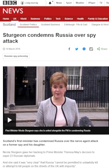 To return to Scotland, I am sorry I shocked many of those who wish me well with the vehemence of my attack on Ian Blackford and the SNP for accepting MI6′ version of events, together with a renewed expression of my outrage at Nicola Sturgeon for having instantly supported Boris Johnson’s anti-Russian rhetoric over Salisbury without waiting for evidence.