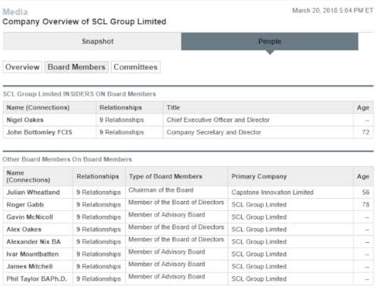 It took me a minute to find out that Cambridge Analytica is owned by a British company, SCL Ltd, which in effect does exactly the same activities in the UK that Cambridge Analytica was undertaking in the US. I then looked up SCL on Bloomberg.