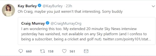 My perspective on the interview itself was that the interviewer became aggressive and sarcastic, increasingly shrill as the apparent effort to discredit me was not going well, and resorting eventually to asking about any old extraneous matter but the Skripals. I strongly suspect it was not me being boring, but the strange performance by Kay Burley, which motivated Sky to bury the interview.