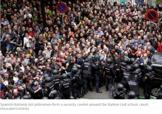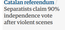Sky News every half hour is repeating the mantra that the Catalan government claims a mandate for Independence “after a referendum marred by violence”, again without stating what caused the violence. In general however Sky’s coverage has been a great deal better than the BBC; Al Jazeera has been excellent.