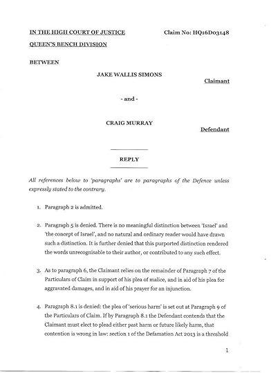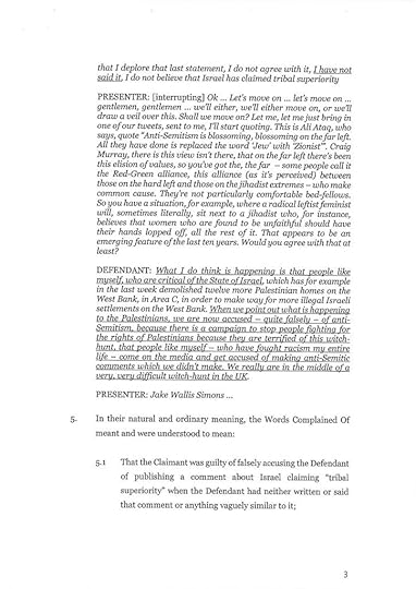 I continue urgently to need contributions to my defence in the libel action against me by Jake Wallis Simons, Associate Editor of Daily Mail online. You can see the court documents outlining the case here. I am threatened with bankruptcy and the end of this blog (not to mention a terrible effect on my young family). Support is greatly appreciated.