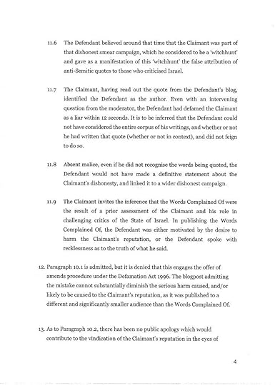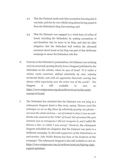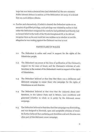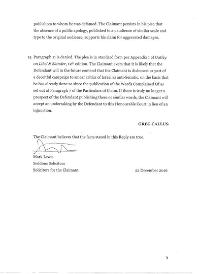 This interview with Mark Lewis, the lawyer suing me, is headlined “UK’s Foremost Libel Lawyer Sets His Sights on Israel’s Enemies.” It characterises opponents of Israel as “Nazis” and opines “I am quite happy to take their homes off them… at least they can be a homeless Nazi.” I sincerely hope he does not consider me a Nazi, though plainly this case is started by my falsely being smeared as an anti-Semite. But no matter how objectionable somebody may find my views on Israel/Palestine, how does it serve justice that “at least my” wife and 8 year old son “can be homeless.” That is however precisely what Mr Lewis seeks to achieve and to be plain, he has threatened me in person with bankruptcy. The money, of course, would go to Mr Lewis and his team still more than to Mr Wallis Simons.
