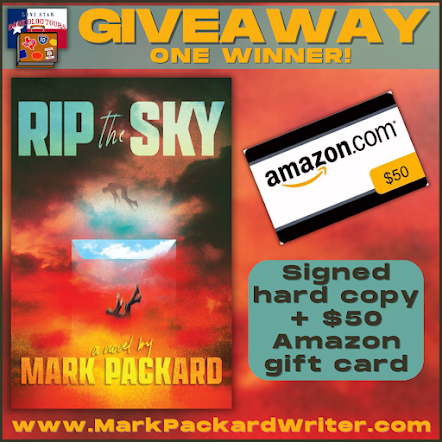 ------------------------------------------------------------------------------GIVEAWAY! GIVEAWAY! GIVEAWAY!ONE WINNERSigned hard copy of RIP THE SKY & $50 Amazon gift card(US only; ends midnight, CST, 10/13/23)