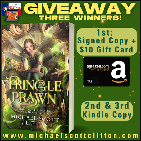 --------------------------------------GIVEAWAY! GIVEAWAY! GIVEAWAY!THREE WINNERS 1st Prize: Autographed copy of Pringle Prawn + $10 Amazon gift card 2nd & 3rd Prize: Kindle copy (US only; ends midnight, CDT, 10/20/23)