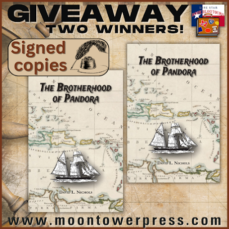 --------------------------------------GIVEAWAY! GIVEAWAY! GIVEAWAY!TWO WINNERSSigned copy of THE BROTHERHOOD OF PANDORA(US only; ends midnight, CDT, 10/26/2023)