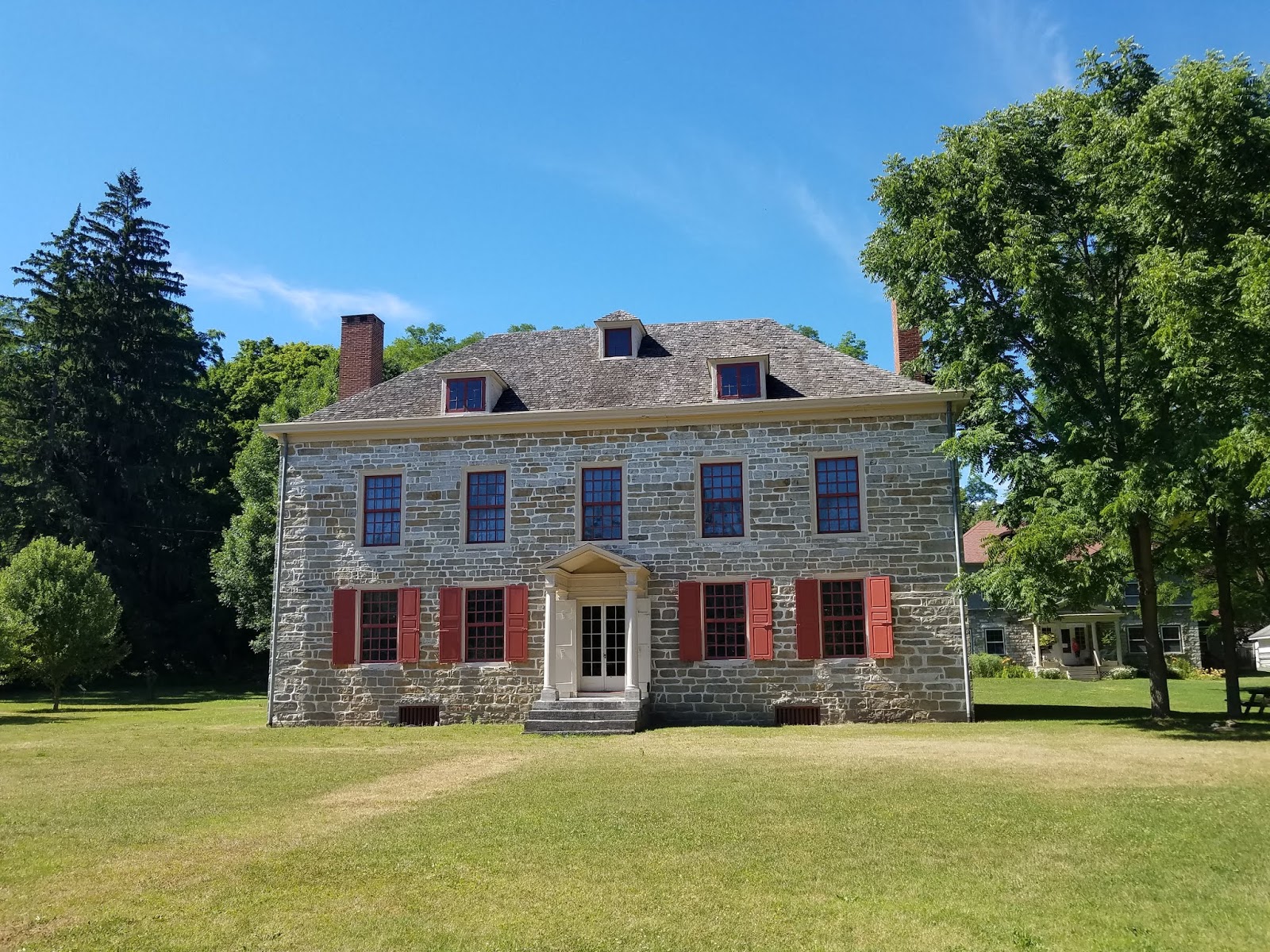 The home of hero Nicolas Herkimer was the first of three historical homes we toured on the same day. We arrived just about 10:00am. There were two other people there. The house is located outside of the town of Little Falls. The grounds are large and the setting is lovely. The Georgian house is in fantastic condition and beautifully furnished, including some items original to the house. We had a great tour, our guide was well versed in the history of the house and the life of Nicholas Herkimer. After viewing the house we visited the graveyard which has a very large monument dedicated to Nicholas Herkimer. The visitors center has many interesting displays and is worth walking through. When we left we were the only visitors there.