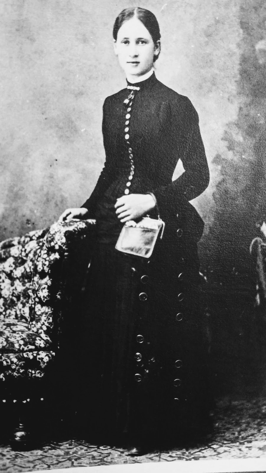 This is the second batch of photos that were recently found in a resale shop. This beauty is Martha Ann Morris aged about 16 according to the writing on the back of the photo. She was born in Canada on in 1869. On 28 January 1891 she married Angus Knuff. Agnes and Martha can be found on the Canadian census for Battleford, Saskatchewan for many years. In 1930 Martha was living in Los Angeles with her daughter, Loretta Moore. Both she and Angus applied for Social Security in the United States. Martha died on 12 April 1935 and is buried in Los Angeles. Angus died in 1951 and is buried in Canada. These photos were part of collection that included the Jennison Family of Mason City, Iowa who also moved to L.A.According to a second photo, Martha Ann was raised by her grandparents and later became a 'mothers helper for a family named Morrison. Pictured below. However there is an ancestry tree which lists her parents as Matthew Morris and Emma Hutchinson. Both of these names are on the back of this photo. I suspect that these folks are her parents.