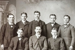 Horton Clark JennisonTaking a break from my second novel to post some pictures that were donated to a resale shop. This handsome man is Horton Clark Jennison. He was born on 24 March 1874 in Mason City, Iowa. Mason City is due north of Des Moines, and sorry Iowa but it appears to be in the middle of nowhere. Sorry just sayin. Anyway Horton's parents were George Henry Jennison and Addie Mary Potter, originally from Swanton, Vermont. According to an ancestry tree George Henry was the son of Nahum Eager Jennison (no that's not a typo). Nahum Eager was a minute man in Massachusetts, probably a friend or hero to the parents. In fact I just found a reference for a Israel Jennison whose married daughter was Sarah Eager, so it seems they were related. If this ancestry is correct, which at first glance seems plausible. Nahum was born on 24 April 1793 in Worcester, MA, he died 8 August 1849 in Swanton, Vermont. Swanton is just shy of the Canadian border. Nahum married Betsy Hubbard in Swanton on 5 January 1824 and had at least nine children, George Henry coming at the end. George married Addie Mary Potter of St. Albans. At some time after their marriage the couple moved to Mason City, Iowa.