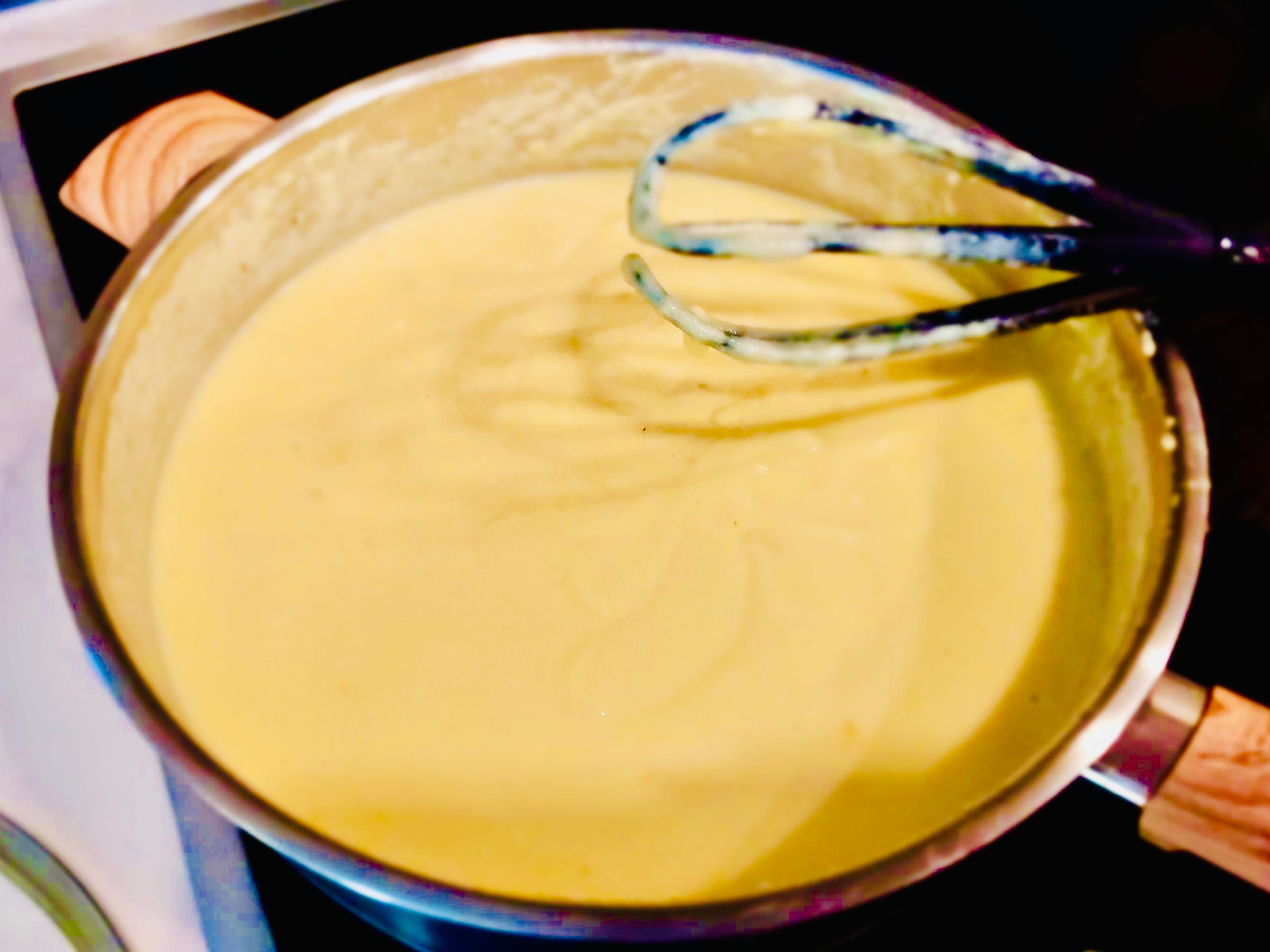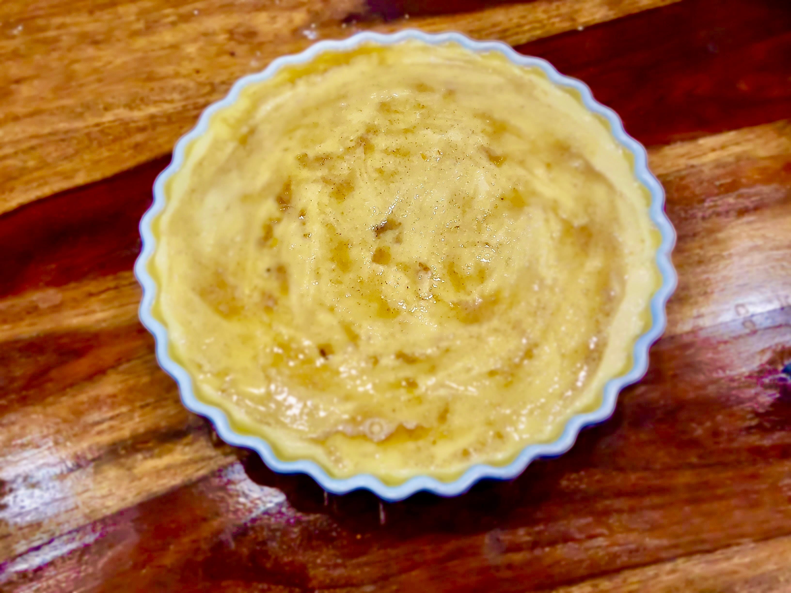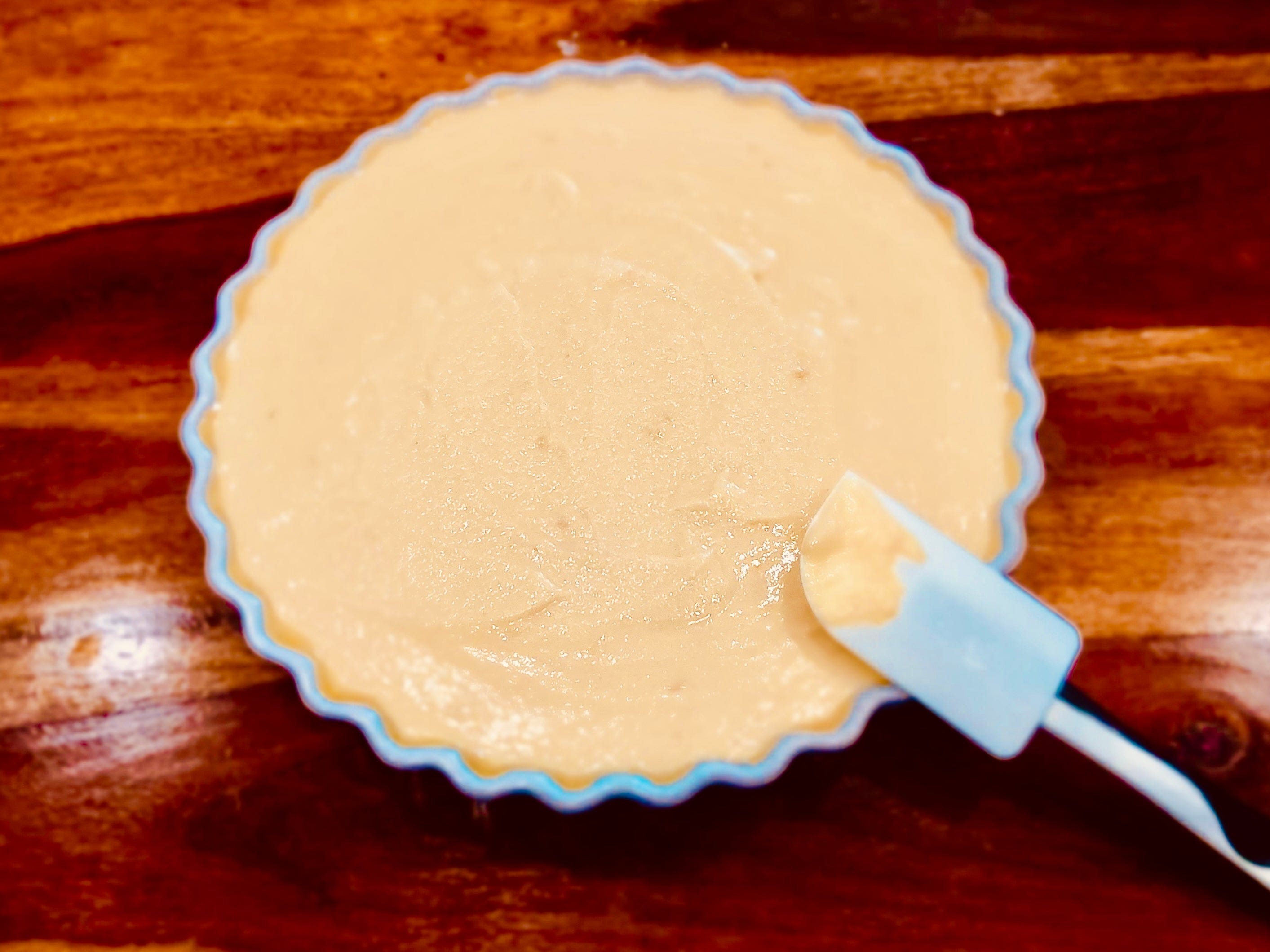 **(tempered eggs – To ‘temper’ the beaten eggs, gradually add 1 tbsp of the warm custard batter into the beaten egg mixture and stir quickly. Once it is blended, add a bit more warm custard to the egg mixture and stir quickly. Tempering the eggs allows the eggs to gradually become warm without cooking. This will prevent the eggs from ‘cooking’ which happens when you add them directly to a mixture that is too hot. )