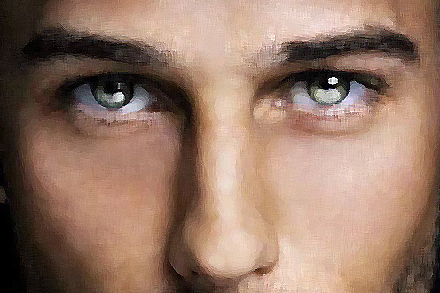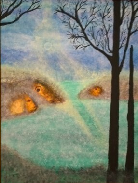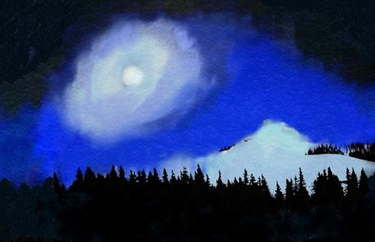 Demonic EyesWhen I finished painting Moonlit Mist, I kept seeing a face in it. This has happened more than once, and I���ve always followed my instincts and worked out the faces or bodies, animals, persons, or mythical creatures that I discovered. Don���t know why I didn���t do it in this case. The idea haunted me and scared me at the same time.