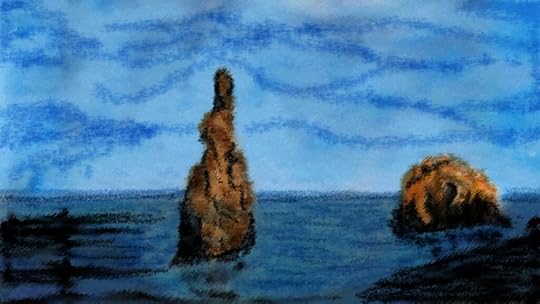 Here is another digital artwork I���ve worked on lately. After finishing it, it occurred to me that Homer’s Sea Monsters could look like this. The brooding atmosphere certainly indicates danger. Which would seem the lesser of two evils? I���m not certain. No doubt, sailing through that gap might catch you between a rock and a hard place.