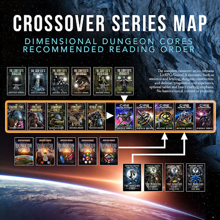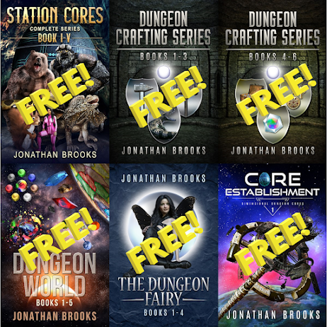 That's right, you can get all 20 books that crossover in the Dimensional Dungeon Cores series AND the first book, Core Establishment, for absolutely no cost. The completely FREE books only last through Sunday, August 27th -- so snatch them up quick before they go back to regular price! They are all also available through KU as well as audiobook, though books in the latter format are unfortunately not free because I cannot change the prices on Audible.