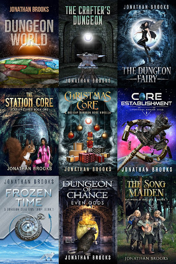 You can find them all here on my Amazon Author Page, or individually:Dungeon World (Dungeon World series) The Crafter's Dungeon (Dungeon Crafting series) The Dungeon Fairy (The Hapless Dungeon Fairy series) The Station Core (Station Cores series) Christmas Core (Holiday Dungeon Core series) Core Establishment (Dimensional Dungeon Cores series) Frozen Time (Time Core series) Dungeon of Chance: Even Odds (Serious Probabilities series) The Song Maiden (Uniworld Online Trilogy series)