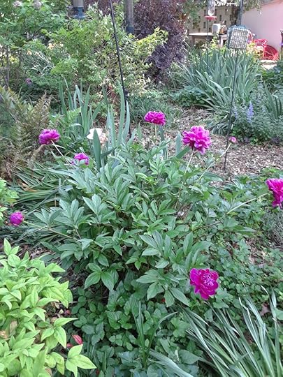 Just a few irises left to flower, but the peonies are making me happy. I would like to cut them and bring them in, but generally they last longer in the garden.