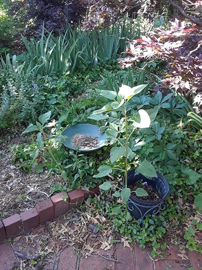 Volunteer sunflowers…from seeds missed by the birds last year. Free plants!