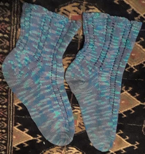 An early pair much worn.There is a fun 10-stitch afghan pattern I’ve made more than once. This pattern is on Ravelry, but there are other copies floating on the internet. It is good for using up the small quantities left from other projects and I’m inching towards starting another one. The tricky part (if there is one) is the corner turn, but other than that it is simple.
