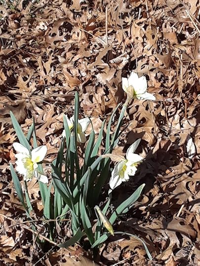 The best part of right now is the plants are starting to flower. I’ve a small bouquet of white daffodils, a hellebore and one white tulip. Only one tulip with the strength to flower.