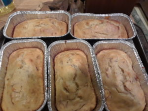 And baking – 17 miniature banana bread loaves. Had to clear the collection of frozen bananas out of the freezer to make room for other things and yes it is time for baking. Five have been delivered to the neighbors, left, right and three across the street. Like zucchinis, banana bread needs to be shared! I’ve not had any complaints that I bake too much. The one person who doesn’t do sweets is the one I live with. So unless I plan to eat that much of whatever I’m baking, the neighbors are going to get gifted.