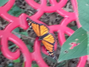 Passing through the kitchen on my way to do ‘something’, and what? One of the Monarch’s has come out of its chrysalis! WooHoo