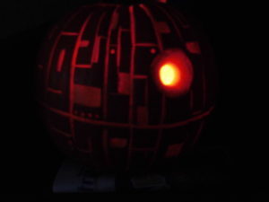My Death Star Pumpkin. Not bad carving if I say so myself and I do. I like carving pumpkins and this one is probably one of my all time best.