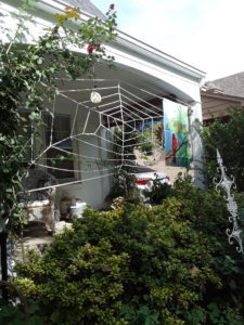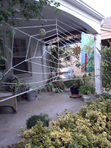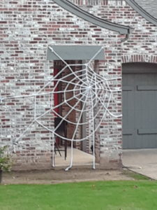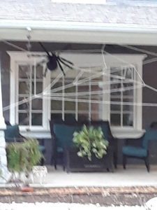 My neighbor down the street liked it so much that she asked me to help her do a web on the pillars in front of her house. Done, and done. We grow very LARGE spiders in this neighborhood. Actually I need to find the ‘spider’ I have to go with this. It is somewhere in the basement.